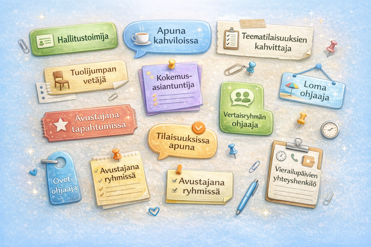 Yhdistys tarjoaa jäsenilleen myös mielekästä, toisten hyväksi tehtävää työtä. Haluaisitko sinäkin liittyä vapaaehtoisten joukkoon? Auttavia käsiä tarvitaan aina. Ota yhteyttä!